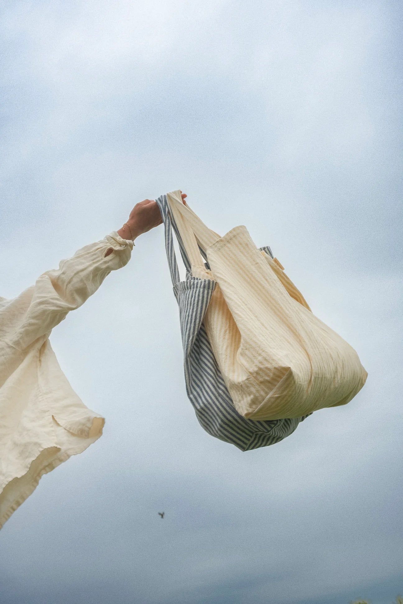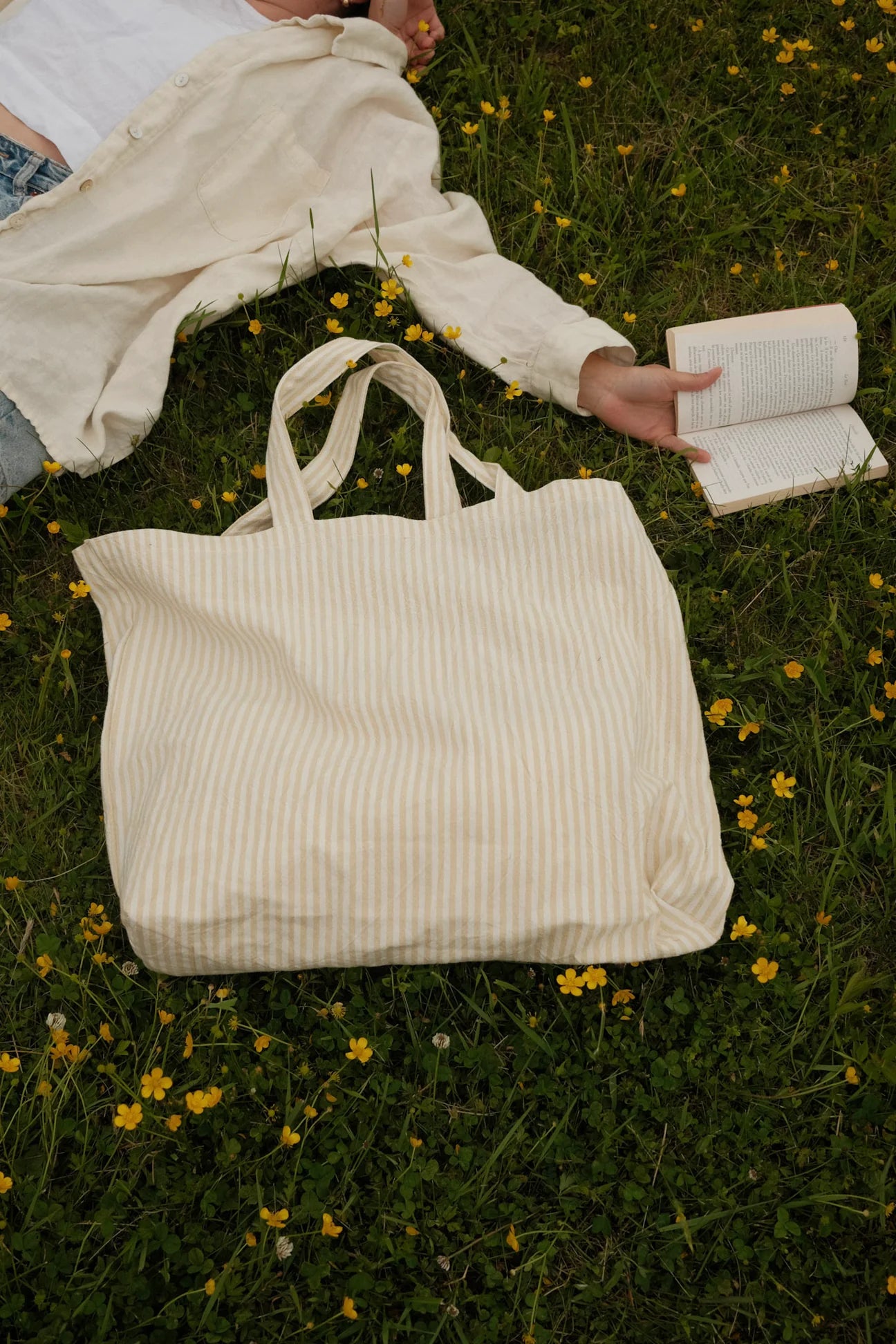 Son tissu ligné et texturé nous rappelle les vacances au bord de la mer et son format est parfait pour y transporter toutes vos provisions de la journée. Disponibles dans les couleurs: Jaune et marine | Le jaune est un petit jaune beurre vraiment doux et magnifique. Le marine est un bleu parfait, pas trop foncé, pas trop pâle.