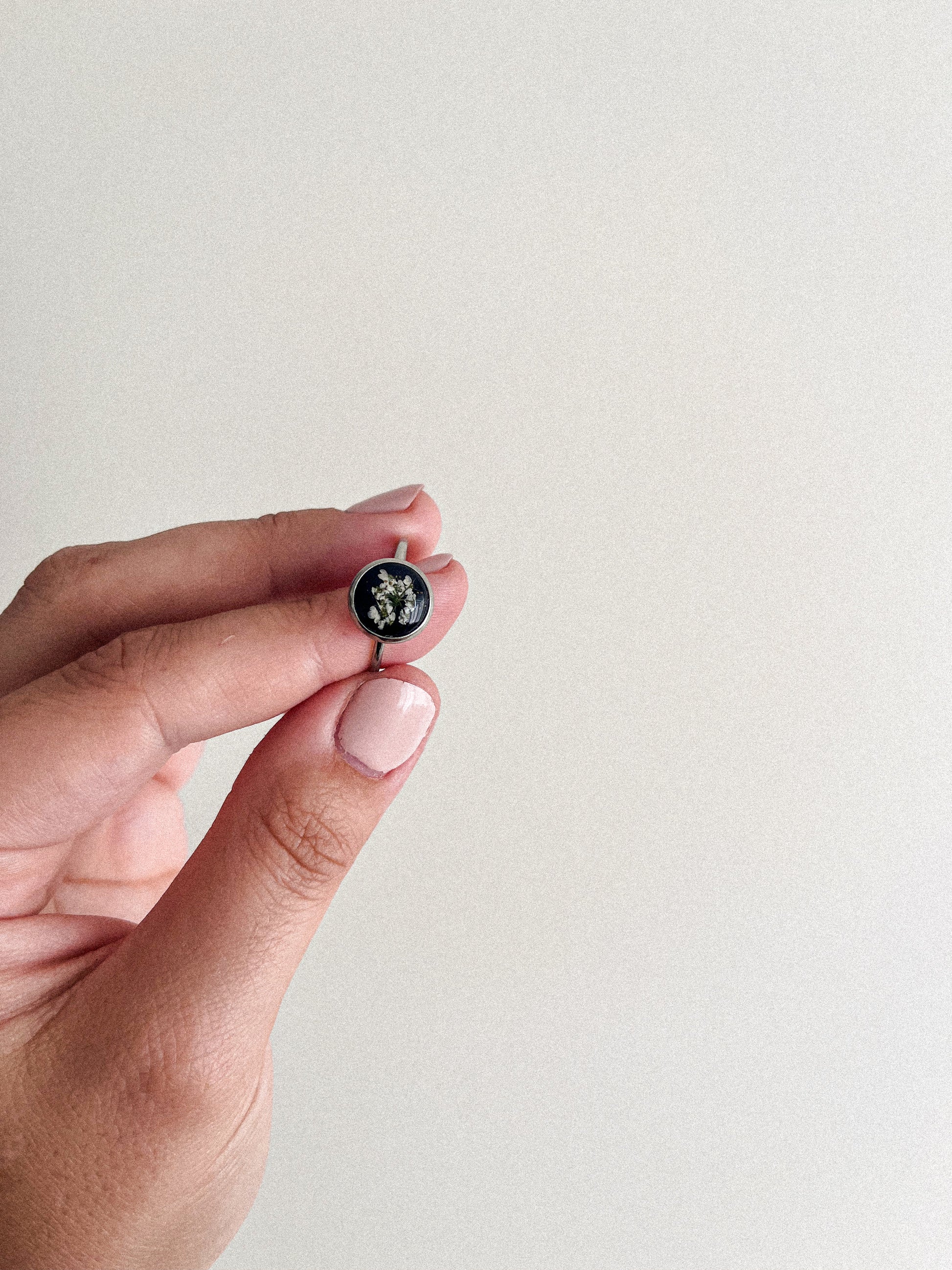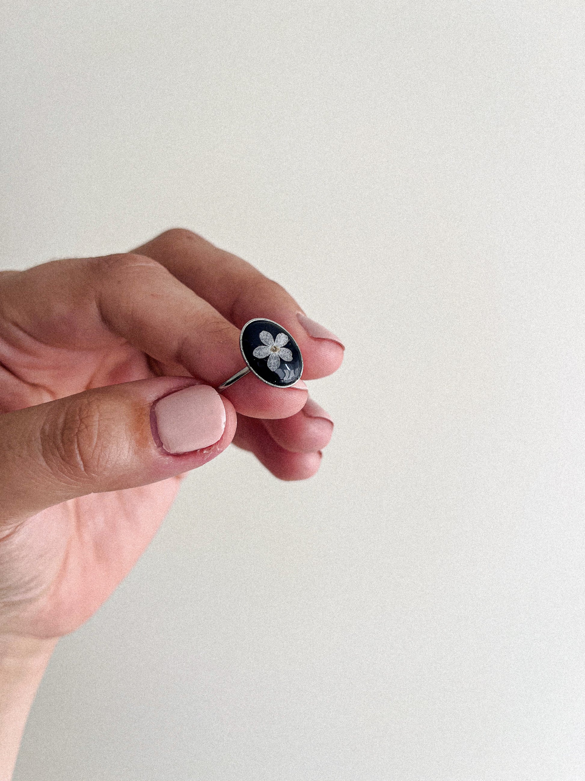Ces bagues sont faites à la main, doucement et précieusement par Andréanne. De magnifiques bijoux faits avec des fleurs d'ici. C'est délicat, unique et ça ajoute tellement un beau quelque chose à nos outfit. (: