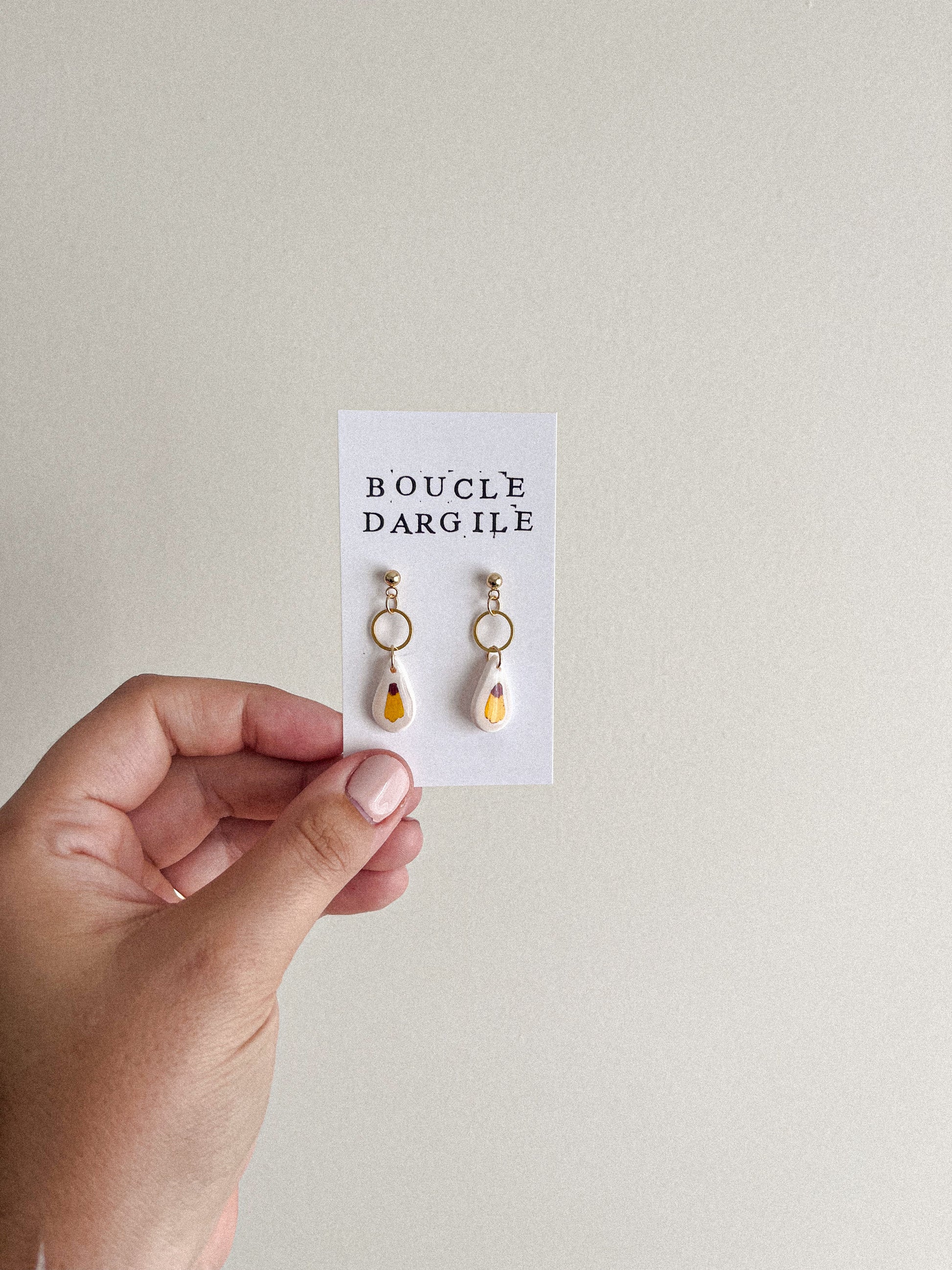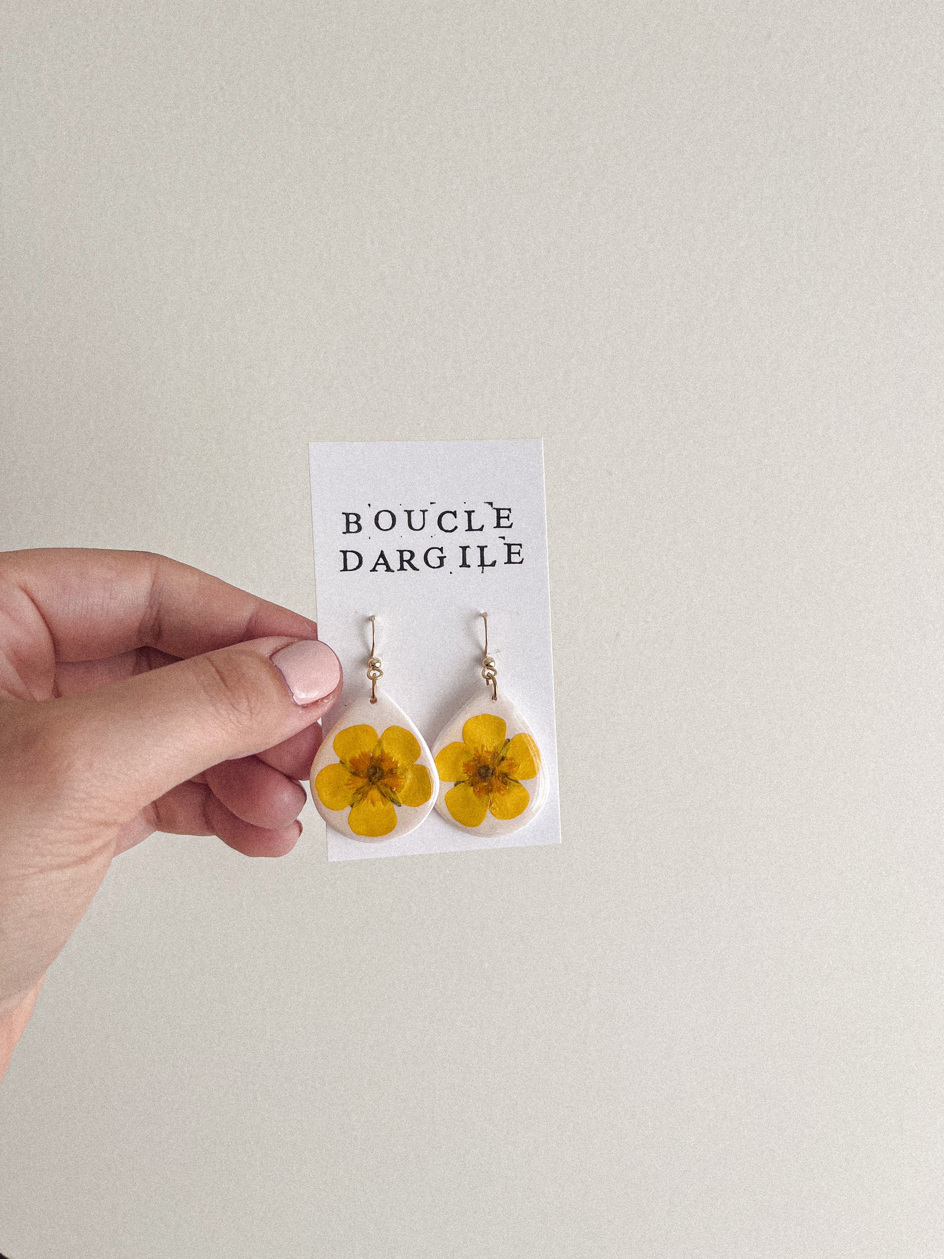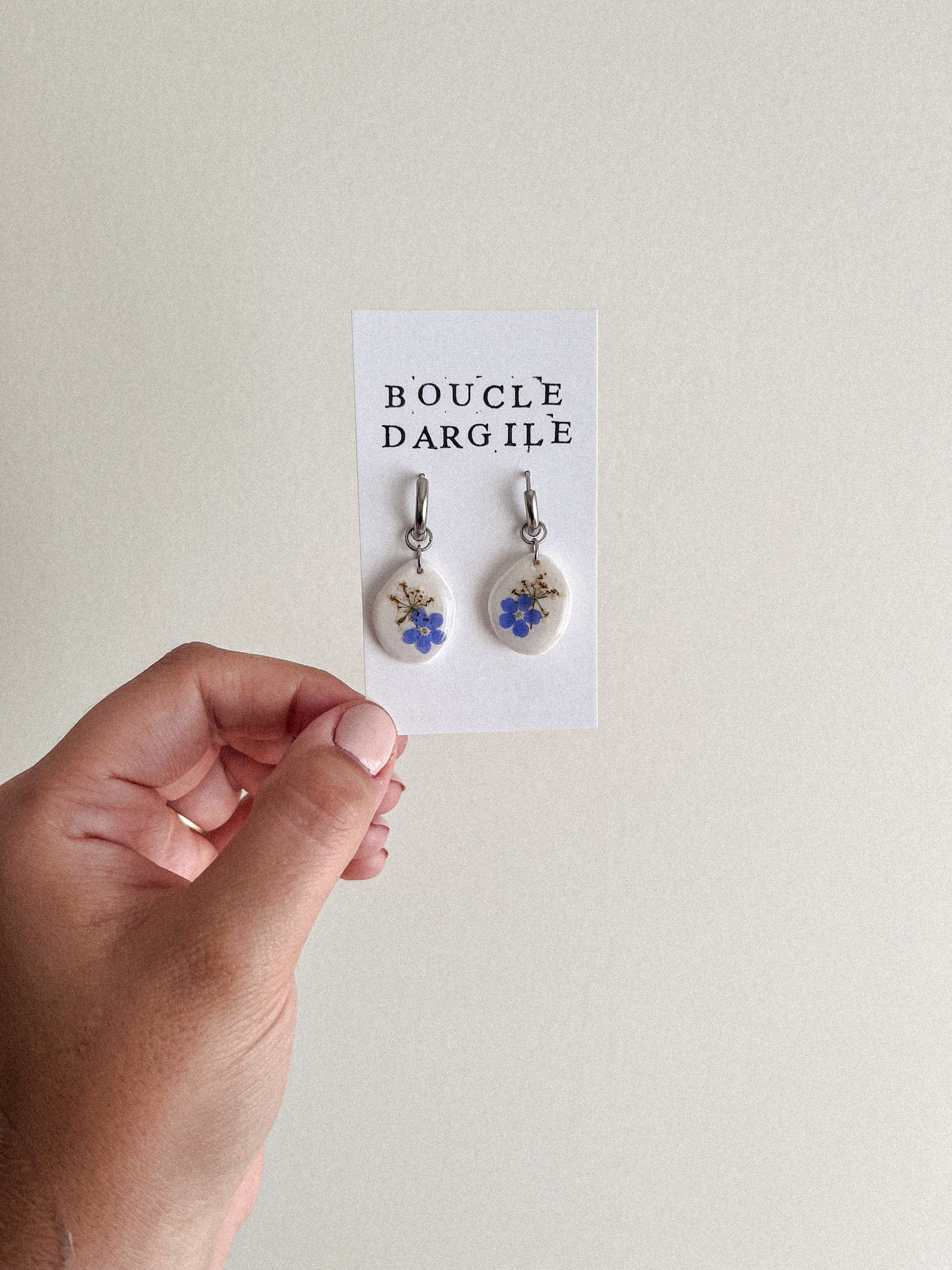 Boucle d'oreille florale - Argile blanche