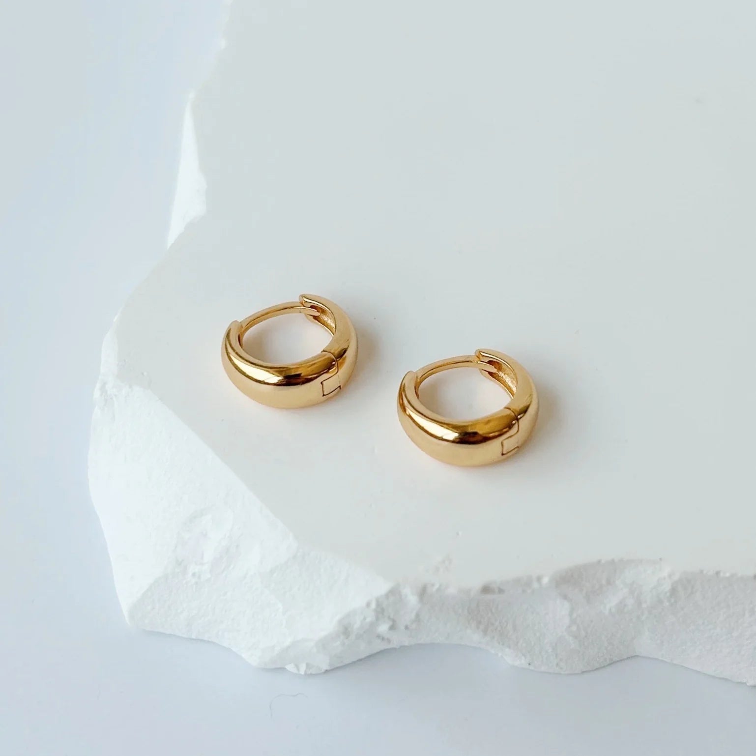 Boucles d'oreilles de types anneaux près du lobe. Avec une attache dormeuse, ces boucles d'oreilles sont plus que confortables et un classique à avoir dans sa boîte à bijoux.