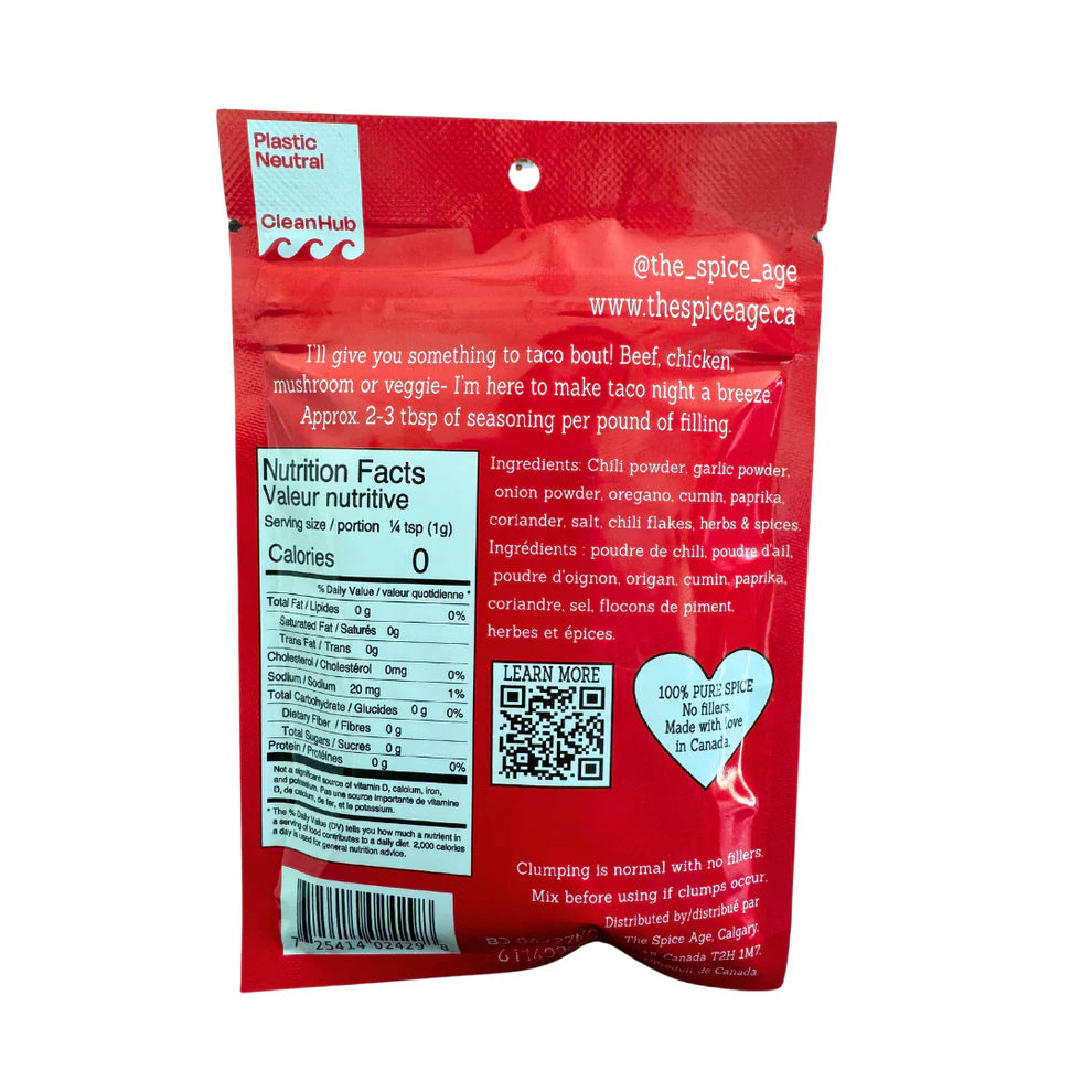 Ingrédients: Poudre de chili, poudre d'ail, poudre d'oignon, origan, cumin, paprika, coriandre, sel de mer, cayenne.