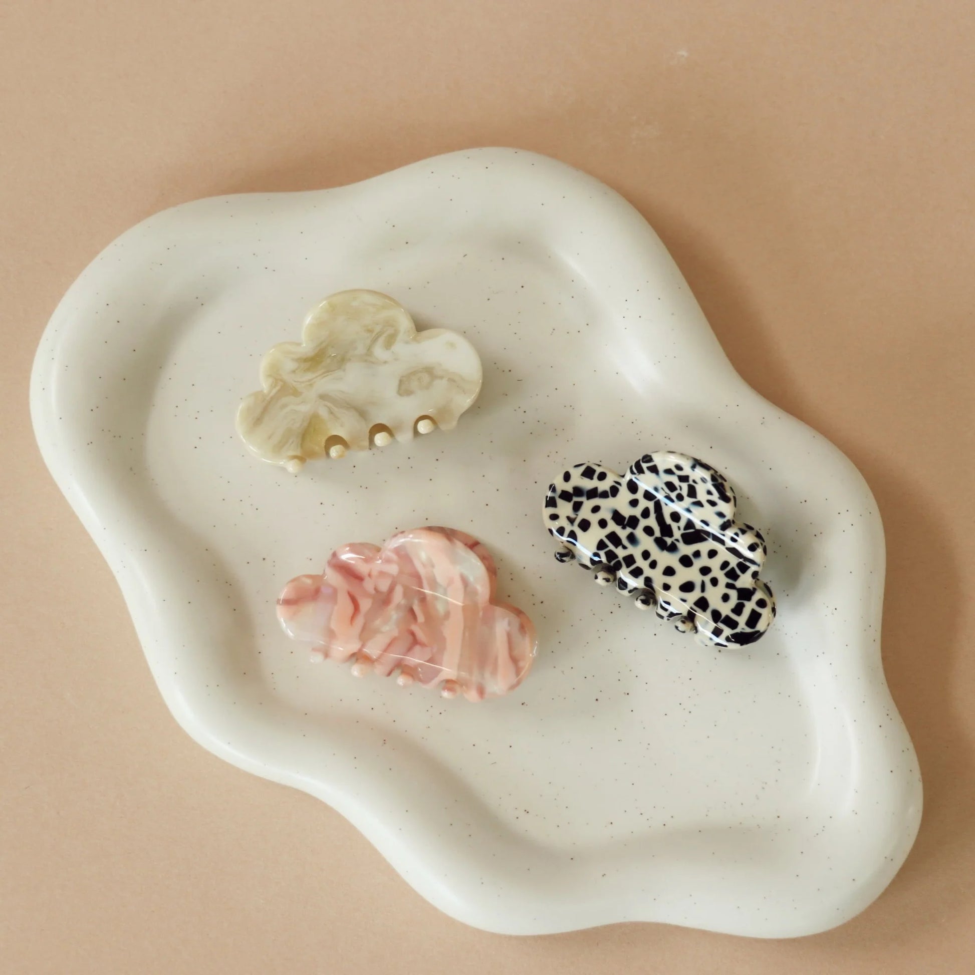 Pince à cheveux en forme de petit nuage. Idéale pour cheveux fins ou les demi-couettes. Disponibles en trois couleurs variées.